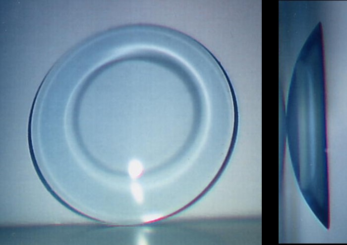 特殊な形のハードコンタクトレンズ(オルソケラトロジーレンズ、図1)の装用によって角膜(黒目)の形状を意図的に変化させ、近視などの矯正をはかる治療法のことです。Orthokeratology =ortho(正常化)+kerato(角膜)+logy(研究、学問)、直訳すると「角膜矯正学」「角膜矯正療法」という日本語になりますが、現在は「オルソケラトロジー」という呼び名が一般的です。省略して「オルソK」または「OK」とも呼んでいます。以降、「OK」と呼びます。
